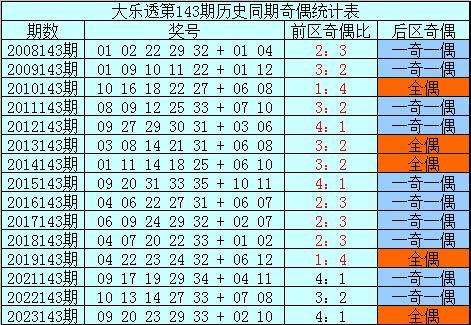 前区第二位:在历史第143期同期开奖中分布范围在02-27区段,平均值为13。1,奇偶比为8:7,目前奇数号码遗漏了1年,今年第143期注意奇数号码回补,关注号码07。