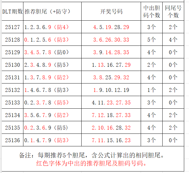 如图,每期推荐胆尾中出1-4个。上期推荐胆尾中出3尾3码!推荐胆尾是按照公式计算的顺序,不定位红球号码的顺序。本期推荐胆尾:3尾/4尾/0尾/1尾/8尾,加推防守胆尾+胆码号码:***(会员专区可见)。个人分析,仅供参考。