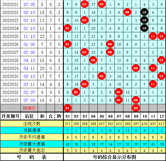 后区分析:上期奖号为全奇组合,本期预计奇数号码继续火爆,防全奇组合再出,两码关注:01 09。