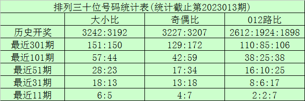 在连续11期奖号中,该位奇偶比为4:7,奇数出现较少,本期适当关注奇数回补;