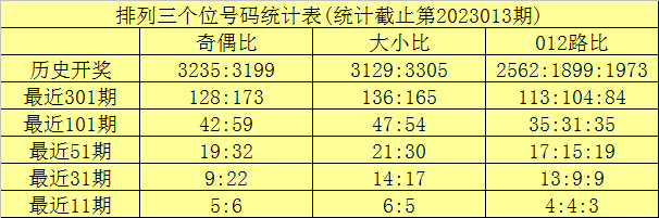 在前面11期奖号中,百位奇偶比开出6:5,奇数较热,本期再出奇数号码;