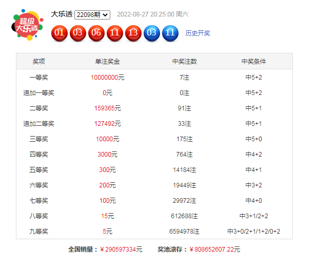 体彩大乐透第2022098期开出奖号:01、03、06、11、13+03、11。其中前区奖号012路比为2:2:1,奇偶比为4:1,后区开出0路号码和2路号码。