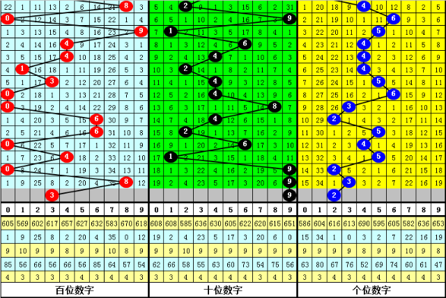 十位分析:上期奖号为9,出现大号、奇数、0路号码,在连续11期奖号中,该位大小比为4:7,大号走势较冷,本期防止大号回补;