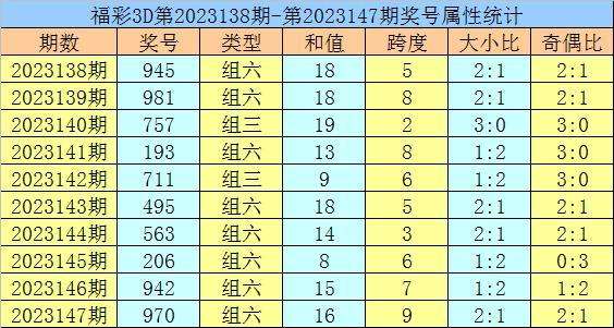 开奖回顾:福彩3D第2023147期开出奖号970。奖号形态为组六,奇偶比为2:1,012路比为2:1:0,大小比为2:1,和值为16,跨度为9。