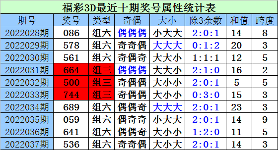 038期财迷福彩3D预测奖号:奇偶比大小比