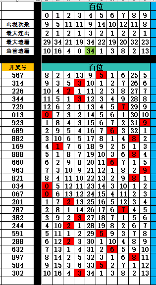 1:百位排序(近100期)开奖号百位0-9个数排序为5723860491 *首选*>>>57238 *次选*>>>60491