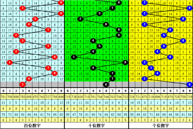 直选定位:上期百位开出1路号码:4,本期百位注意0路号码:3;