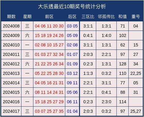 上期回顾:大乐透2024017期开出奖号:前区03、07、25、27、35,后区01、04。