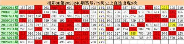 上期回顾:福彩3D第2023246期开出奖号779。