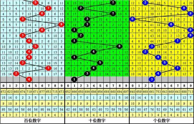 百位:近期大小号码开出比例基本相当,上期小号出现之后,本期看好小号重复开出;另外,该位0路和1路号码在最近20期奖号中走势较热,2路号码表现相对较冷,本期该位放弃2路号码,参考号码4。