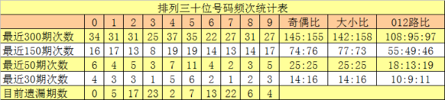 上期回顾:排列三第2022162期开出奖号707,号码012路比为1:2:0,奇偶比为2:1,大小比为2:1,和值为14,跨度为7。