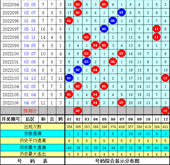 后区跨度分析:在历史同期开奖中,后区跨度奇偶比为7:7,基本持平,本期预计跨度为偶数,关注10。