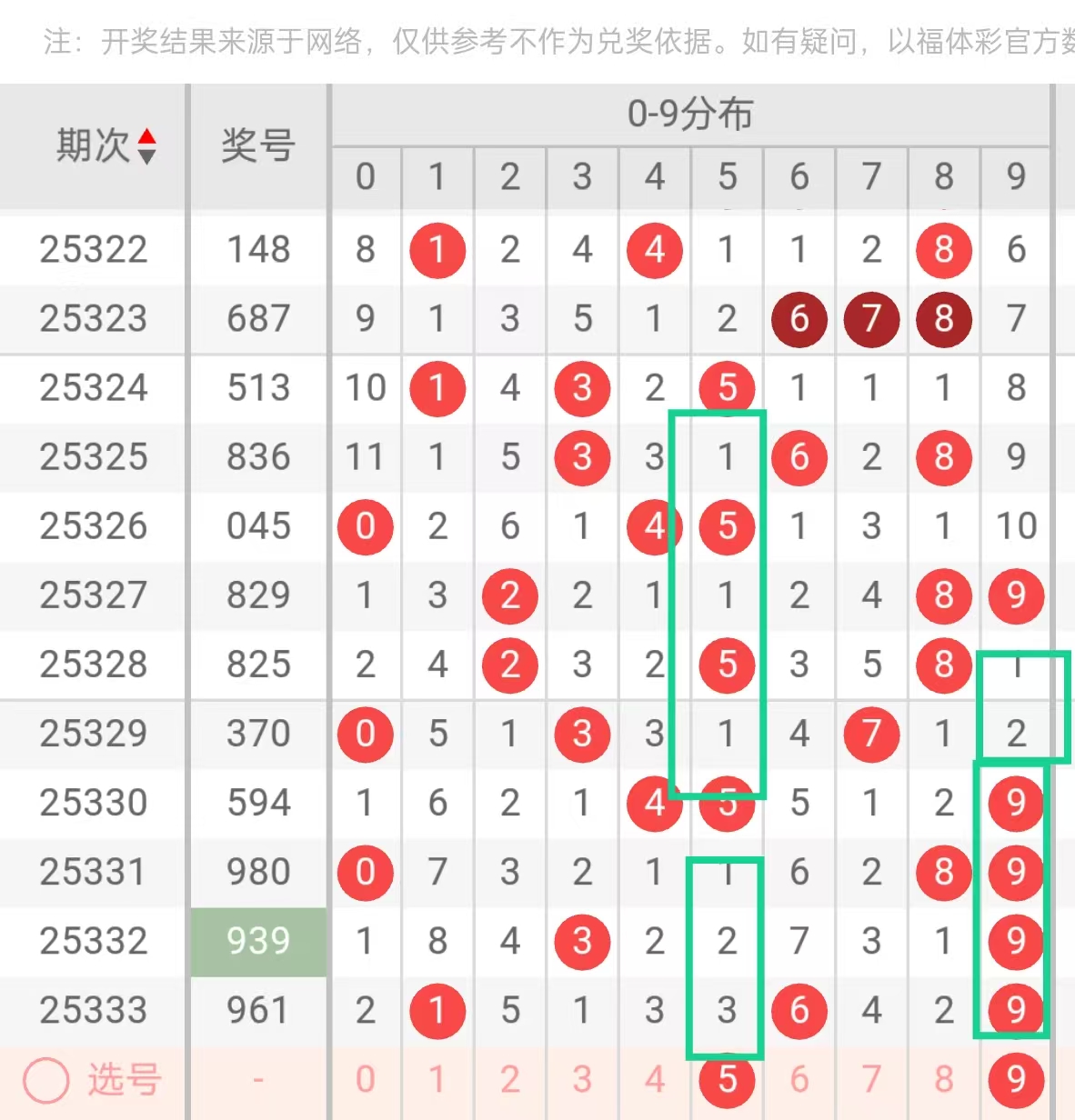 热号持续活跃:数字3、8、9在近11期出现频次最高(各5次),尤其是9在最近3期连续出现,形成短期热势。