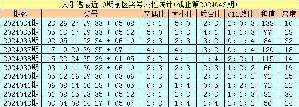 开奖回顾:体彩大乐透第24043期开出奖号为:03 04 08 14 27+05 07,前区奇偶比为2:3,大小比为1:4,012路比为2:1:2,质合比为1:4,后区奇偶比为2:0,大小比为1:1,012路比为0:1:1,质合比为2:0。