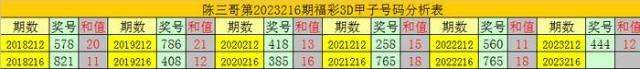 陈三哥3D第2023216期甲子号分析: