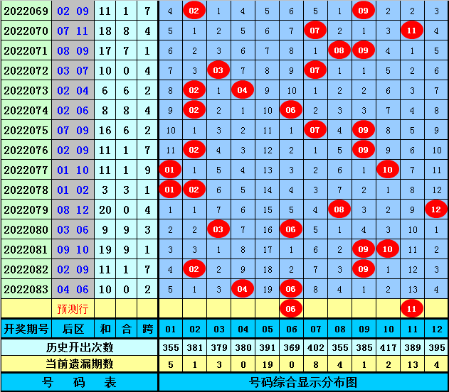 前区二号球分析:上期开出奖号09,该位最近10期出现范围在03-26之间,中点为14。5,其中中点以下的奖号开出7次,中点以上的奖号出现3次,本期看好该位走大,注意中点以上号码,关注号码16。
