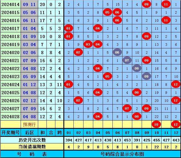 前第一区(01-12):上期没有出号,走冷断区,该区最近10期断区2次,共出现20个奖号,本期看好前第一区转温,开出1个奖号。