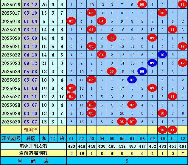 后区分析【一区01-04,二区05-08,三区09-12】:上期后区奖号为06和07,全部出现在第二区,近50期后区三区比为36:33:31,近10期三区比为7:6:7,本期重防第三区号码大热,精选两码10+11。