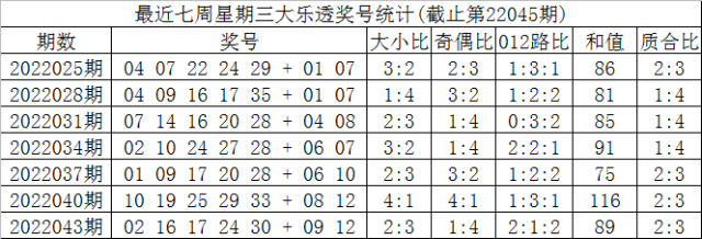第2022046期大乐透星期三奖号分析:
