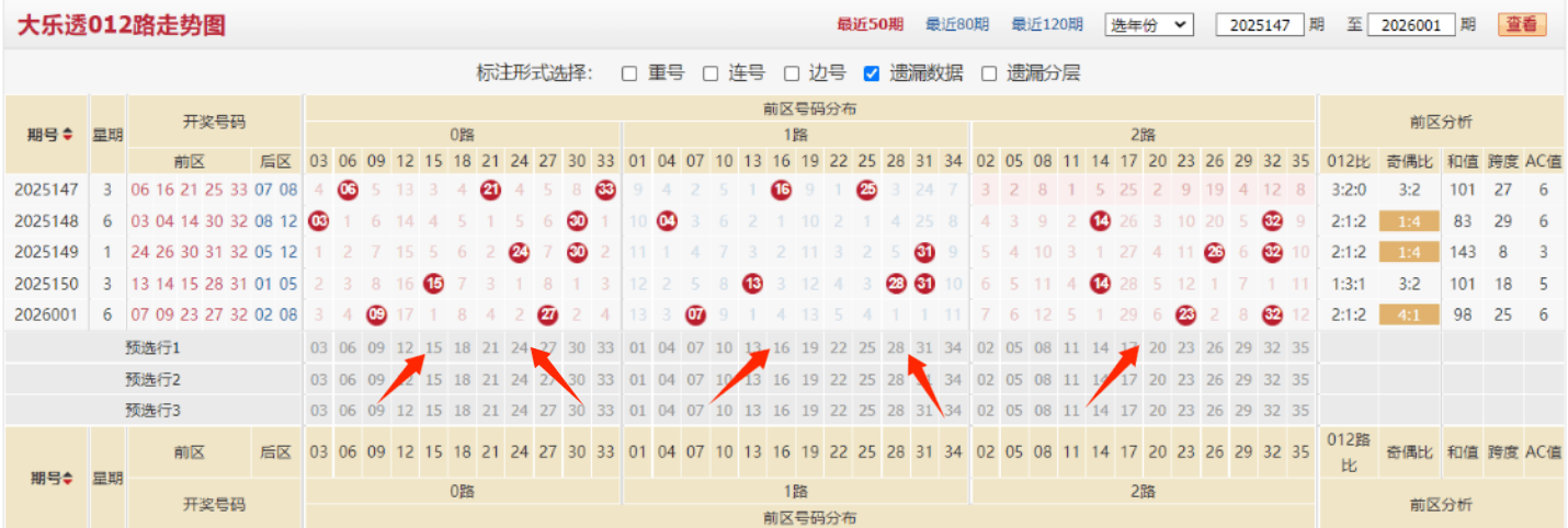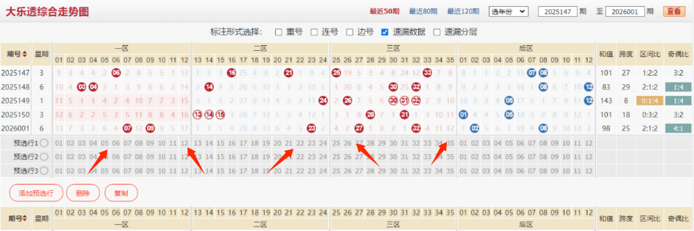 上期大乐透的开奖号码为:07 09 23 27 32+02 08,和值为98,跨度为25,区间比例为2:1:2,奇数偶数比例为4:1,012路比例为2:1:2,相机号码没有过多的特征趋势展示。主要就是一区,二区,三区的组合和散号,唯一的组合点在三区的27,32。相机的奇数热度是要高过偶数号码热度的。目前较为空缺的就是二区的中间区域。也是本期需要回补的中心区域,这是本期号码的初始基本思路。
