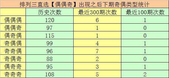 排列三第2023280期奖号为601,直选奇偶分布为:偶偶奇,该奇偶分布历史上共出现了819次,前100期出现6次。