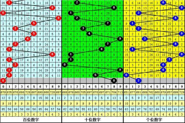 大中小分析:在组选0-9号码分布图中,前10期小号(0-2区段)出现13枚奖号,中号(3-6区段)出现9枚奖号,大号(7-9区段)出现8枚奖号,上期大号区域轮空,本期看好中号码走冷,注意3-6区段不落号。
