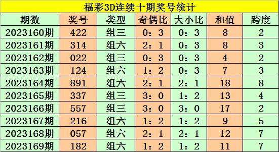 上期回顾:福彩3D第2023169期奖号:182。组六、小大小、奇偶偶。