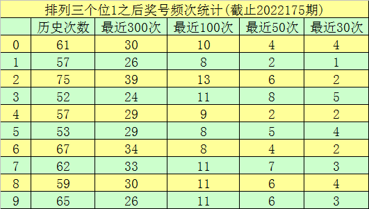 第三位杀号:第三位上期出现奖号1,该位历史上奖号1已开出了609次,最近100次第三位开出1时,下期号码0-9分别落号:号码2→13次,3、7、8、9→11次,0→10次,4→9次,1、5、6→8次。