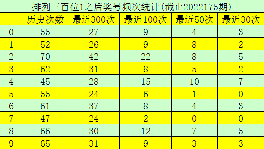 第一位杀号:上期第一位奖号为1,第一位奖号1历史上出现579次,前100次该位开出奖号1之后,下期号码0-9出现次数从高到底分别为:号码2→22次,4→15次,8→12次,0、1、9→9次,3、6→8次,5→6次,7→2次。