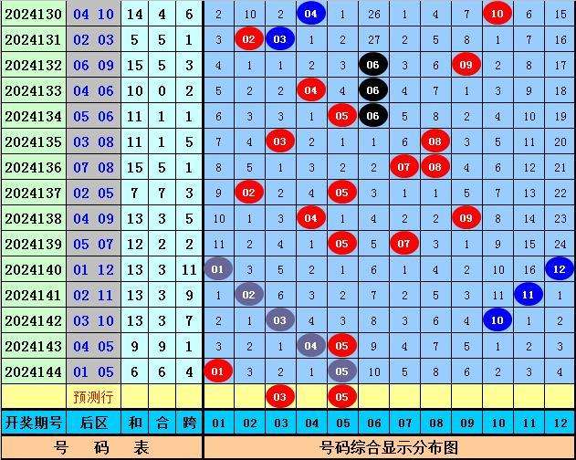 后区号码:最近10期后区号码奇偶比为12:8,大小比为8:12,最近十周星期六后区号码奇偶比为10:10,大小比为11:9,本期后区关注全奇组合,两码看好03 05。