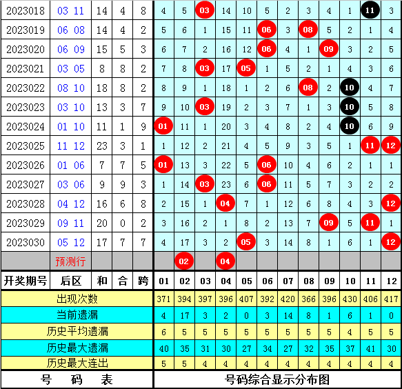3、历史上前区龙头号码分布在01-19之间,奇偶比为11:5,012路比为7:6:3。本期龙头参考02;