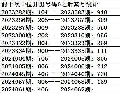 一、上期开奖:福利彩票3D第2024061期奖号为406。奇偶比为0:3,大小比为:1:2,奖号和值为10,奖号跨度为6。