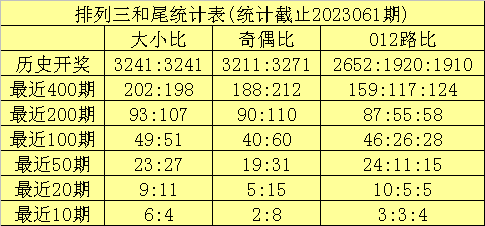 和尾质合推荐:统计前50期奖号,和尾质合比为19:31,合数和尾相对较热;统计前20期奖号,和尾质合比为5:15,质数和尾出现较少,本期看好质数和尾回补。