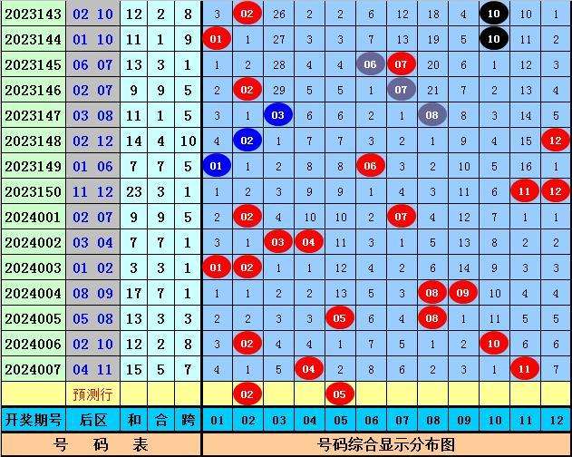 后区分析:上期后区开出一偶一奇、1路+2路组合04、11,最近10期后区奖号奇偶比为8:12偶数号码走势活跃,后区奖号012路比为5:6:9,本期预计出现在02、05、06、08、09之中,两码单挑02、05。
