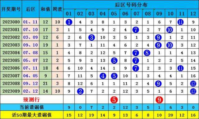 上期后区中奖号码为02 12,近10期后区综合奇偶比13:7,奇偶数出号率奇数占优,本期推荐奇奇数05 09:
