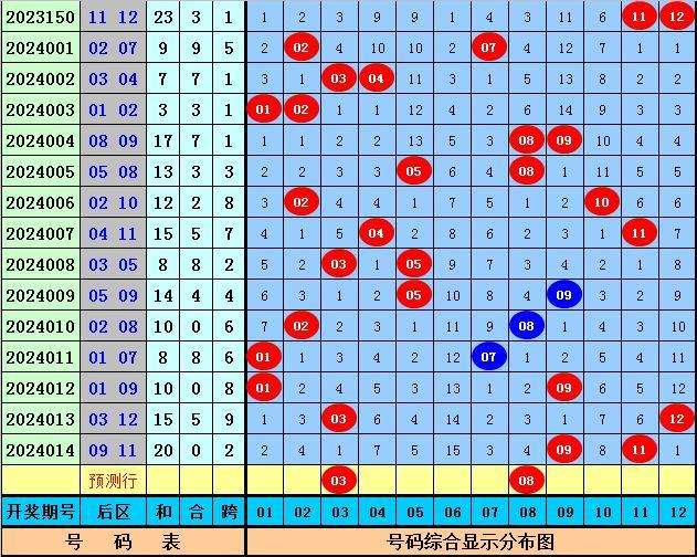 5、后区奖号分析:最近9期后区号码012路比为6:5:7,其中012出现期数分别为:5期,4期和7期,上期后区奖号为09和11本期看好1路走冷,关注号码03、05、06、08、11。