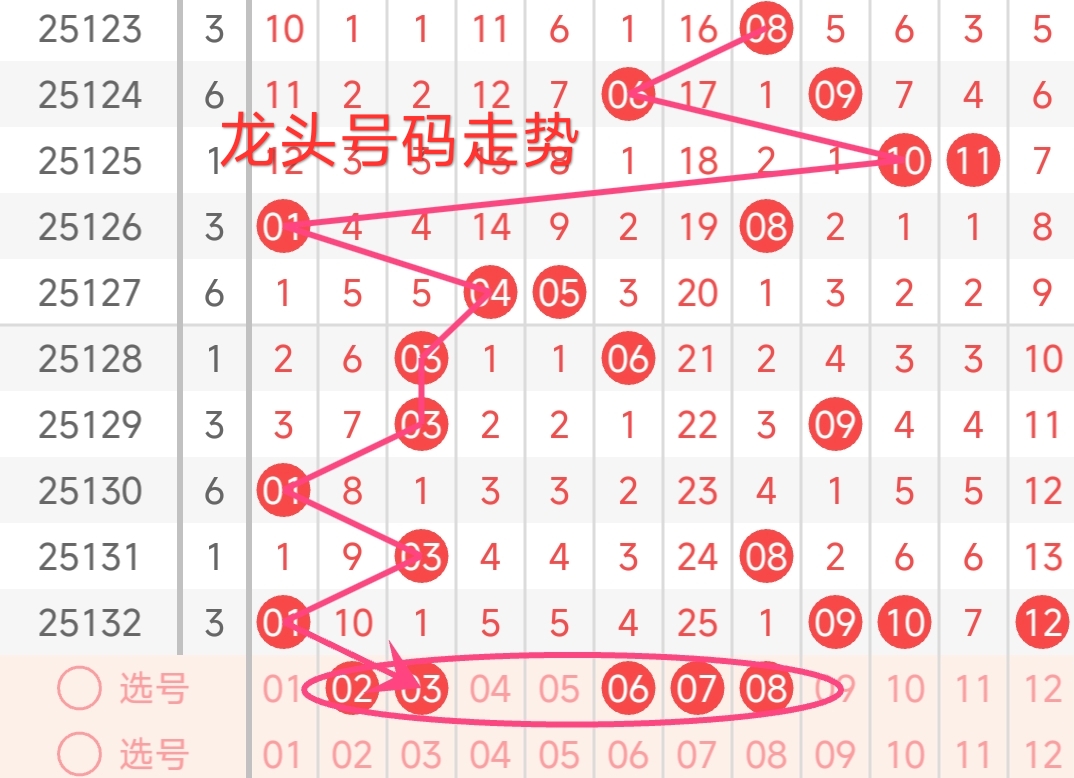 龙头号码走势分析: