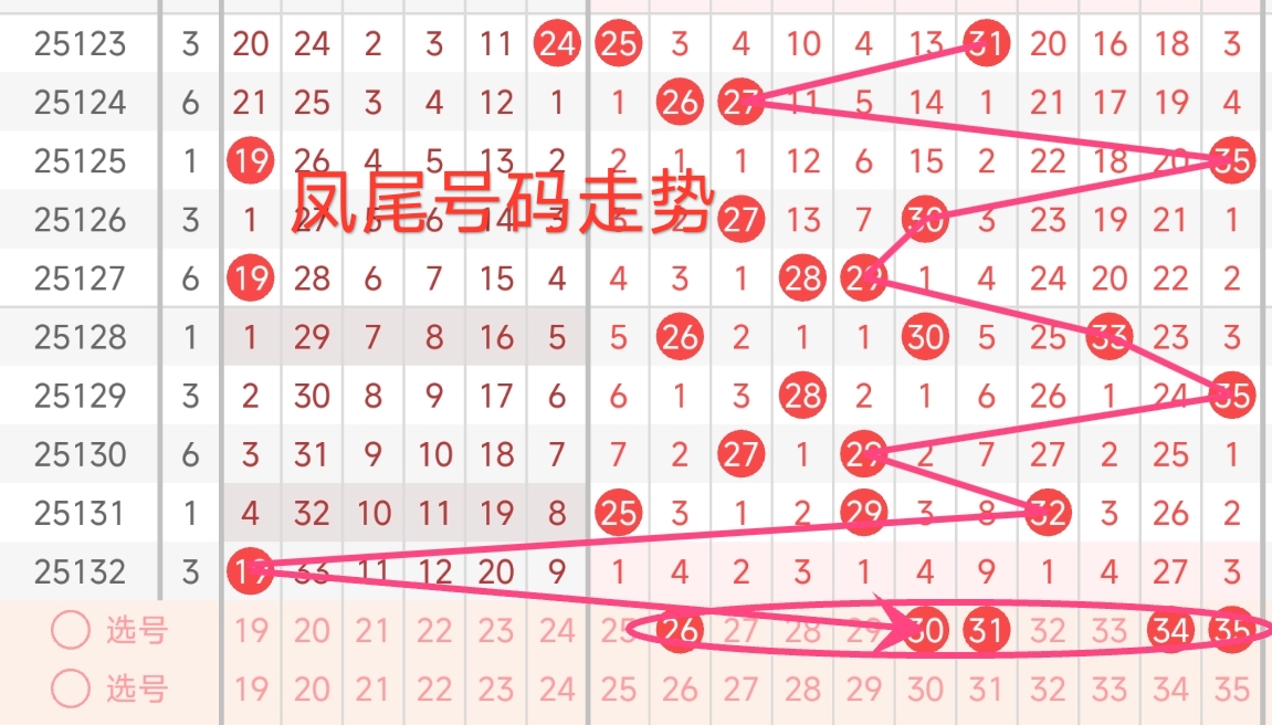 凤尾号码走势分析: