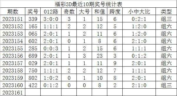 福彩3D第2023161期发哥推荐: