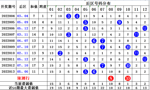 后区走势分析:上期开出号码05 06,为奇偶形态,近10期后区奇奇形态2次,奇偶形态6次,偶奇2次,偶偶0次。奇偶走势较热,本期推荐偶偶形态开出。推荐号码08 10。