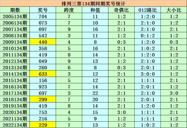 上期回顾:排列三第2022134期奖号为229,组选类型为组三,奖号大小比为1:2,012路比为1:0:2,奇偶比为1:2。