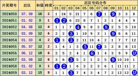 根据近期奇偶走势判断,本期后区推荐:05、11。