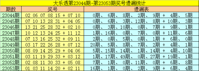 第2023033期号码11出现在四号码球,其下期前区开出奖号:07、09、10、15、24,号码遗漏值分别为:2期、6期、0期、6期、7期。