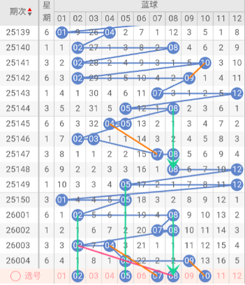 结合蓝球走势,推荐关注号码:02、05、07、08、10。