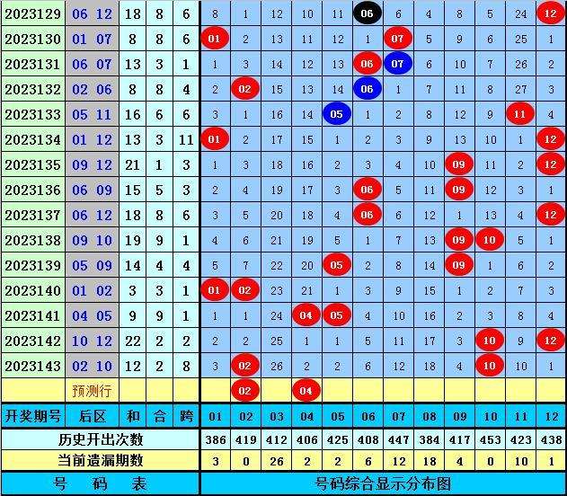 大乐透第2023143期开出奖号为:09、20、23、29、33+02、10。其中前区奇偶比为4:1,三区比为1:2:2,大小比为4:1,后区开出全偶组合。