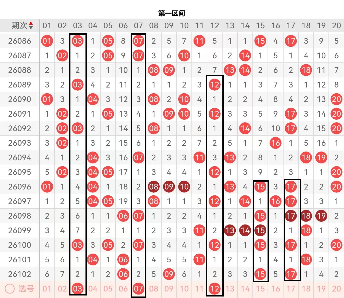 上期第一区间开出(06 09 15 17)四个号码球。上期一区间四个号码球在一区间落位,区间走出温态四码出号区间走出温态趋势,一区间前端龙头06-09对应号码球落位,那么通过分析研判从区间的落位趋势去看一区间整体区间落位号码分布在区间的前后两端。那么本期我们在一区间进行研判时一定要考虑后端号码的回补落位,通过区间的走势特点去研判本期的走势,后端15-17对应号码球开出。我们要注意区间冷态号码球的回补开出,那么本期我们要注意区间的走势端号码趋势转换的可能,因此我们要谨慎操作防止区间走出回补态更为合理。