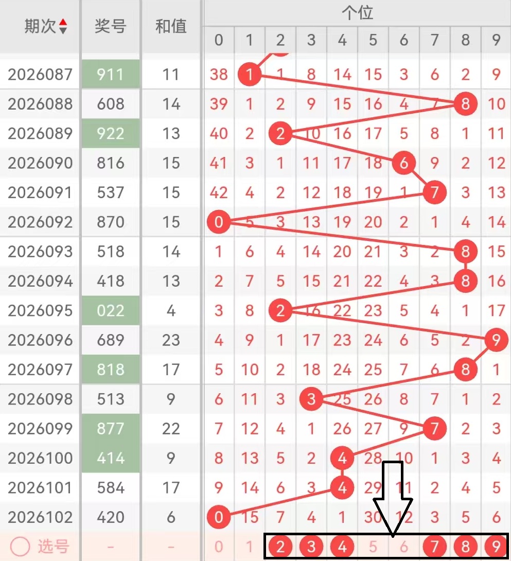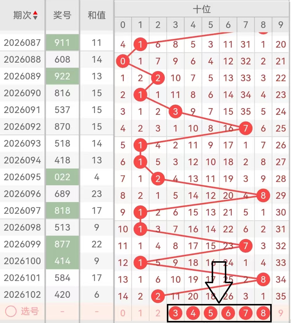 上期十位落位“2”开出偶数号码球,落位号码走出大振幅数值6,上期十位号码开出“2路”号码2,五行走出“木”那么通过对十位的振幅走势来看,上期十位走出大数值振幅6,那么本期我认为十位号码的振幅本期考虑走出中大振幅数值(34567)更符合区间的整体趋势,上期落位小数值2后,十位接下来回补中大数值号球(3456789)的走势更符合区域整体走势,那么本期要注意十位趋势号码在中大数值出现的可能性最大,因此中大数号码球是我们本期在十位的重点思路。