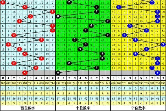 3、在以上0-9号码频次中,号码大小比为25:40,012路比为25:27:13,本期预计百位开出1路号码,参考号码4。