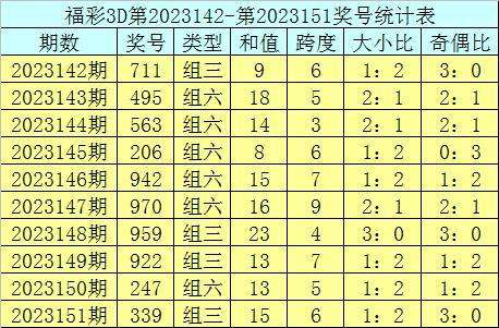 上期回顾:福利彩票3D第2023151期奖号为339。
