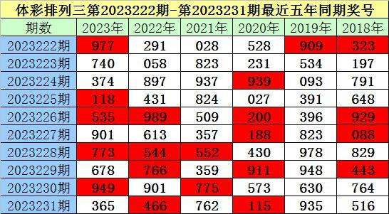 开奖回顾:排列三第2023231期奖号为:365,各位号码遗漏值分别为6、22、4,遗漏总值为32。